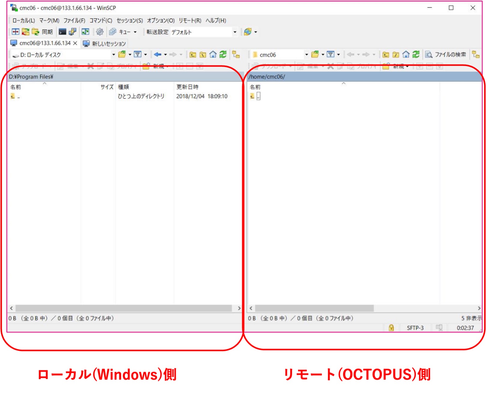 We introduce how to file transfer from your local PC to OCTOPUS. If you have not installed some SFTP or SCP tool on your PC, please install it by yourself in advance.